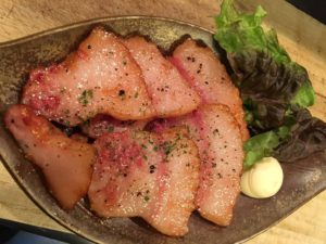 ↑豚のネックから作られたほど良い塩加減のベーコン^^
